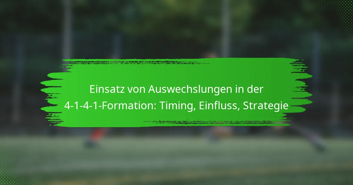 Die 4-1-4-1-Formation ist ein taktisches Setup im Fußball, das die Kontrolle im Mittelfeld und defensive Stabilität priorisiert und effektive Übergänge zum Angriff ermöglicht. Strategische Auswechslungen innerhalb dieser Formation sind entscheidend, um die Teamleistung zu verbessern, die Ermüdung der Spieler zu managen und sich an die sich entwickelnde Dynamik des Spiels anzupassen. Das effektive Timing dieser Auswechslungen kann die Struktur des Teams und die Gesamtwirksamkeit auf dem Feld erheblich beeinflussen.